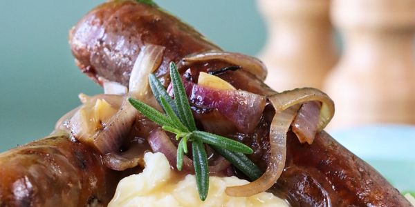 3 Irish sausages with fluffy mashed potatoes and garden peas. Gravy included if required.